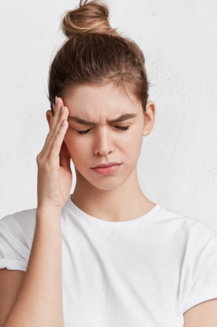 • Головную боль. Часто усиливается при ярком свете и движении.