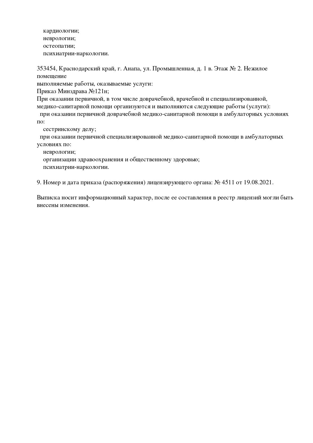 Клиника «СНН+» обладает всеми необходимыми лицензиями и аккредитационными документами на осуществление медицинской деятельности. Онкологи, работающие в нашем мед. центре имеют право назначать сильнодействующие препараты (рецепт оформляется на бланке 107/У-НП с обязательной печатью мед. учреждения, указывается срок действия).